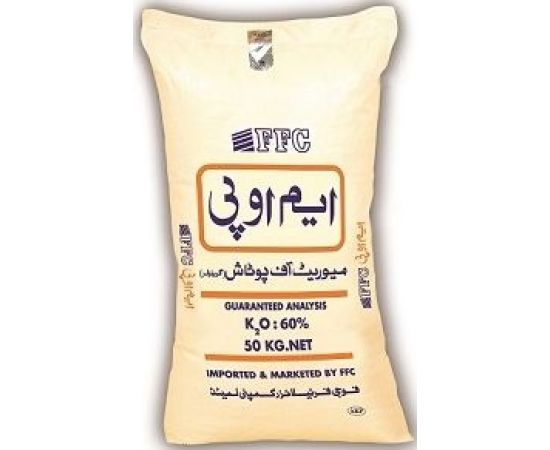 • Potassium chloride (commonly referred as Muriate of Potash or MOP) is the most common potassium source used in agriculture, accounting for more than 90% of all potash fertilizers used worldwide. FFC MOP contains 60% K2O and is used mainly for fertilizing sugarcane, maize, fruit trees, vegetables and other field crops except tobacco.