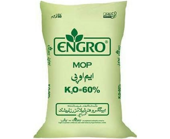 • Potassium, the third most important nutrient is known as quality element. It is very important element in imparting hardiness to plants, hence, its importance in climate change scenario gets too fold. Engro, in addition to potash based blended NPK fertilizers, also supply MOP (Muriate of Potash ) which can be applied as straight fertilizer. Engro has launched Engro MOP in 50 kg SKU targeting all potash loving crops such as maize, sugarcane, potato, wheat, rice, cotton, vegetables, fruits and orchards. MOP contains 60% Potassium nutrient (K2O) and is the most concentrated form of granular potassium. It is also relatively price competitive compared to other forms of potassium available in the market. The chloride content of MOP is helpful for a soil (especially sandy soils) where chloride level is low. Chloride content also improves the yield of produce as it increases disease resistance in crops by promoting thickness of the outer cell walls. It also improves color, flavor and storing quality of fruit and vegetables.
