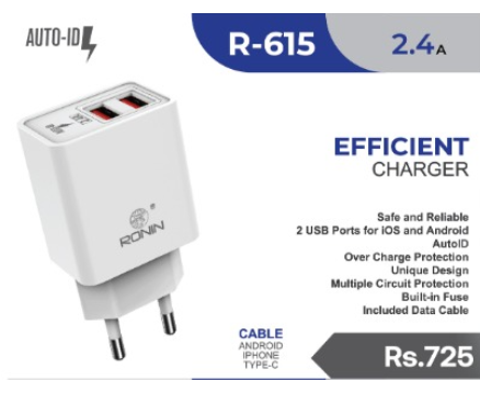 Ronin brings the R-615 with a dual USB output port with cables available in all IOS, android, Type-C, and lighting variant versions. Choose according to your ease and requirement.