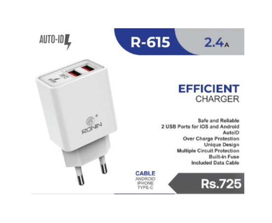 Ronin R-615 comes with 2.4 Ampere capacity making it a charger with a maximum yet safe range of fast charging ability.