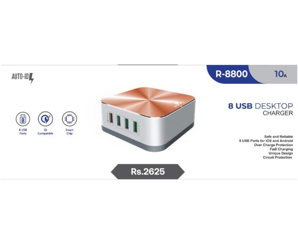 8 ports pump out 50 watts of power, enabling simultaneous multi-device charging.