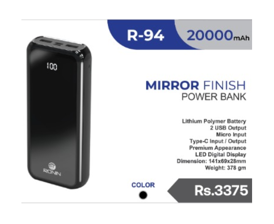 - 1 x Ronin R-94 Mirror Finish 20000 mAh Power Bank