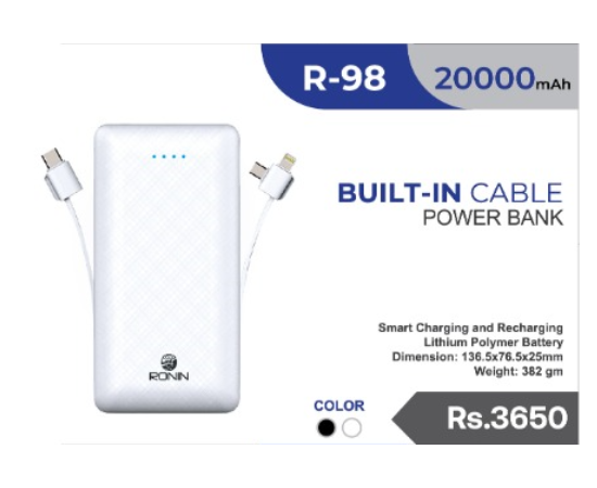 R-98 - Built-In Cable Power Bank 20000 MAh